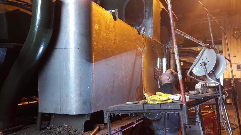 Nur Emma weiß, wie viel Kohle in ihren Kohlenkasten gefüllt und von hier aus durch die unzähligen Heizer, denen sie in ihrem Leben begegnet ist, wieder herausgeschaufelt wurde. So nagte langsam der Zahn der Zeit an ihrem Kohlenkasten und der Rost fraß sich von innen durch’s Blech. Wir nutzen nun die Winterpause für ein paar kosmetische Eingriffe und spendieren der kleinen Lok ein paar neue Bleche, damit sie wieder hübsch aussieht und die Kohle da bleibt, wo sie hingehört.