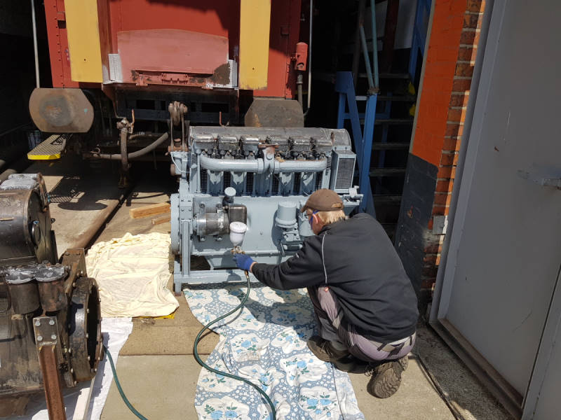 Farbe lief auch durch die Spritzdüsen unseres Lackierers, der zwei Dieselmotoren lackierte, von denen einer demnächst als Ausstellungsobjekt aufgestellt werden soll.