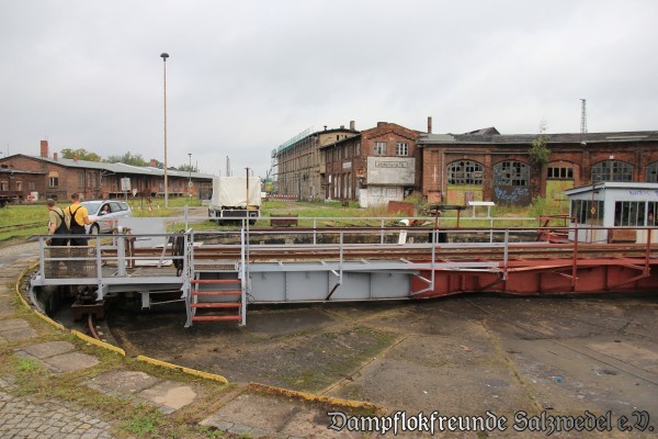 Inzwischen haben die Bauarbeiten im Bereich der Lokschuppen II und III des ehemaligen Bw Wittenberge begonnen: