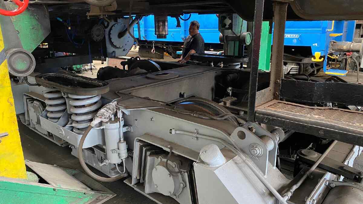 Am vergangenen Samstag wurde ein weiterer großer Schritt bei der Hauptuntersuchung unserer Diesellok 114 774 geschafft. Nachdem nun alle Arbeiten am Fahrwerk und am Rahmen der Lokomotive abgeschlossen wurden, konnte die Lokomotive wieder auf ihre „eigenen Füße“ gestellt werden. Das bedeutete für die Aktiven, dass sie die Lok wieder auf ihre Drehgestelle und damit auf ihre eigenen Achsen stellen mussten. Das war ein spannender Moment und Millimeterarbeit, hat aber zur großen Erleichterung der Beteiligten gut geklappt. Natürlich haben wir bei dieser Aktion auch ein paar Fotos aufgenommen, die wir Ihnen nicht vorenthalten möchten.