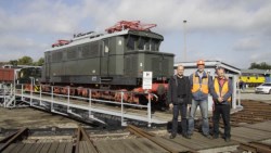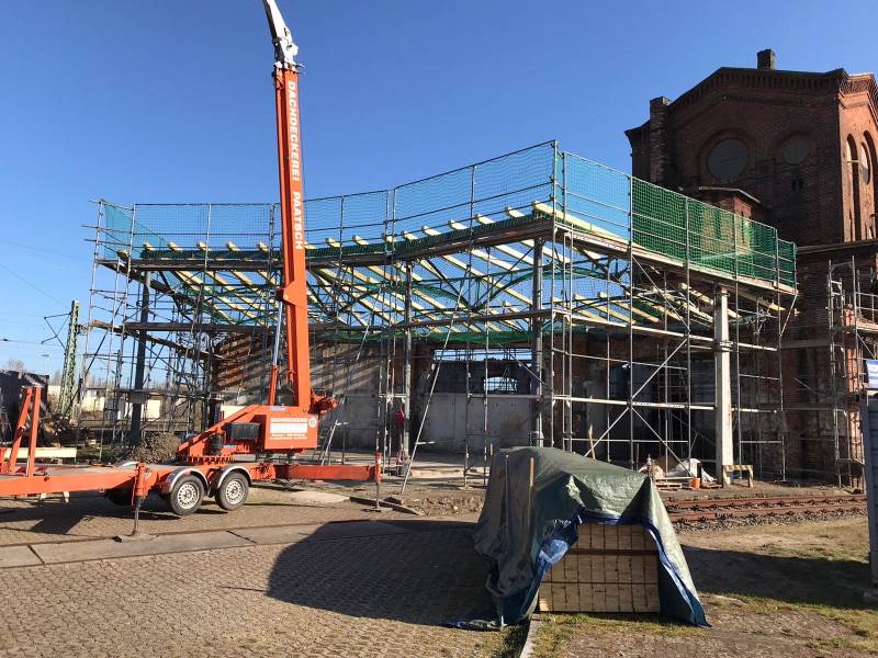 Die ersten Vorbereitungen auf die Reparatur des Gleises unter unserer Besandungsanlage wurden getroffen. Diese sind notwendig, weil die hier verbauten Holzschwellen langsam in die Jahre kommen und verrotten. Das führt leider dazu, dass die Abstände zwischen den Schienen nicht mehr dem geforderten Maß von 1.435 mm entsprechen. Das kann zum Entgleisen von Schienenfahrzeugen führen, die über die abgängigen Stellen fahren. Um die Sicherheit weiterhin zu gewährleisten, wird das Gleis ab Montag, den 18.2., aufgenommen und gebrauchte Betonschwellen eingesetzt. Auch wenn es sich nur um eine relativ kleine Baustelle handelt, muss jede Menge Technik aufgeboten werden, die bereits auf unser Gelände gebracht wurde.