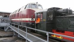 0604 der Osthannoverschen Eisenbahn sowie 102 172-4, die für die Deutsche Reichsbahn gebaut wurde. Bei beiden Loks wurden bereits die Achsen und Zughaken per Ultraschall untersucht, um ggf. verborgene Risse aufspüren zu können, die irgendwann zu einem Bruch führen könnten. Zum Glück gab es keinen solchen Befund und weitere Arbeiten können nun ausgeführt werden. An der Diesellok der Baureihe 102 wurde heute die Vorglühanlage des Dieselmotors instand gesetzt, die für einen reibungslosen Start des Motors sorgen soll, wenn er noch keine Betriebstemperatur erreicht hat.